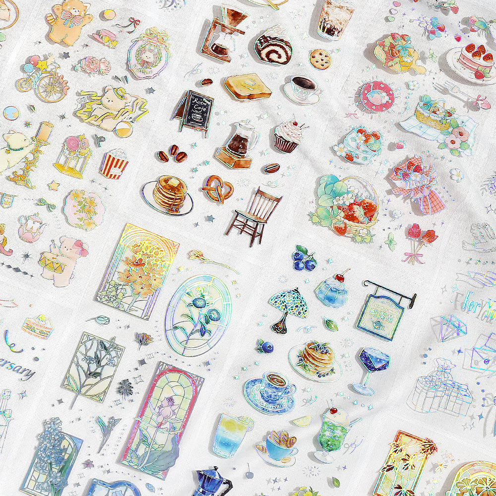 Crafted from high-quality PET material, each set includes three sheets of intricate designs, each boasting a mesmerizing iridescent finish. The transparent nature of the stickers allows for layering, creating soft highlights or adding depth to any project.