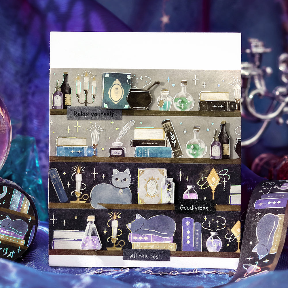 BGM Foil Stamping Masking Tape: Fantasy Bibliotheca Cat