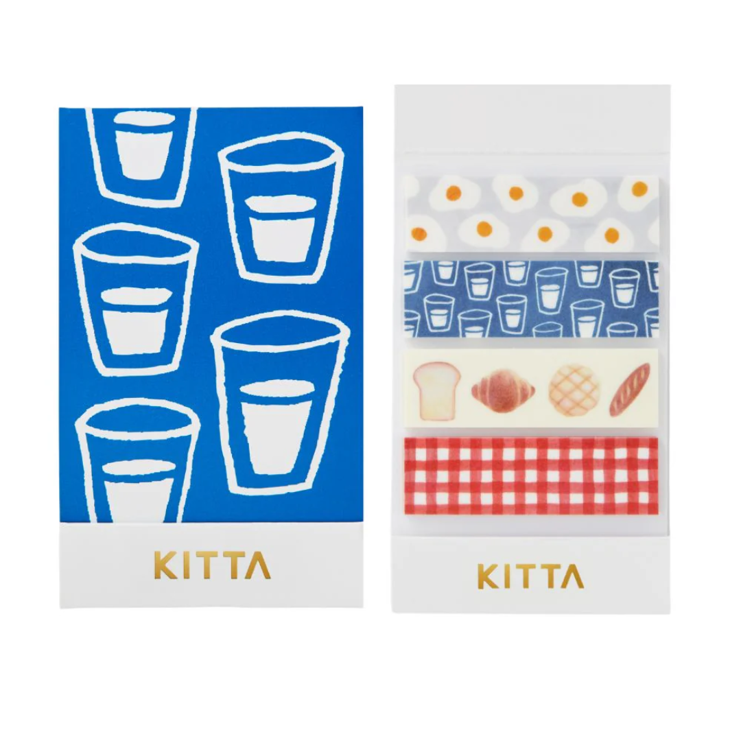 A compact and portable masking tape sticker set designed for everyday journaling. Each tape sticker is pre-cut into 5cm strips, making it easy to decorate pages, attach photos, tickets, and special keepsakes without scissors. The slim KITTA pack fits perfectly into your notebook or pen case, so you can enjoy decorating anytime—whether at home or at your favorite café.