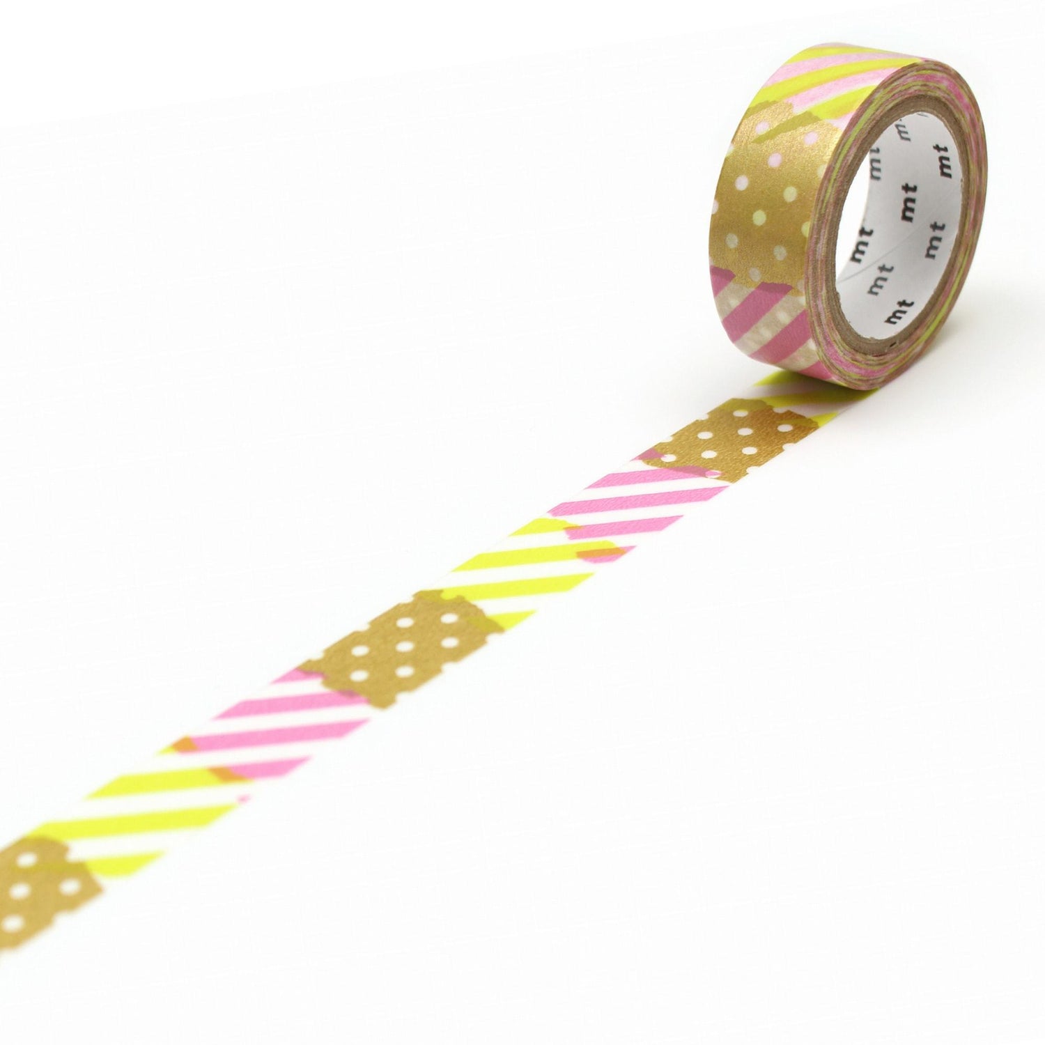 Für die mt DECO-Serie ist eine Vielzahl von Mustern erhältlich, darunter beliebte Tupfen, Streifen, Bordüren und Rasterpapier.