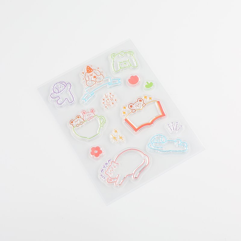 Unlike its traditional rubber stamp, the clear stamp is transparent, which allows you to confirm the stamp's orientation before stamping on a surface. That makes life so much easier as it takes away a lot of guesswork. The clear stamp itself is made of soft material, so you cannot stamp with it alone and you will need an acrylic block as support. The stamp is self-adhesive and will cling onto the block, and swapping stamps cannot be easier!