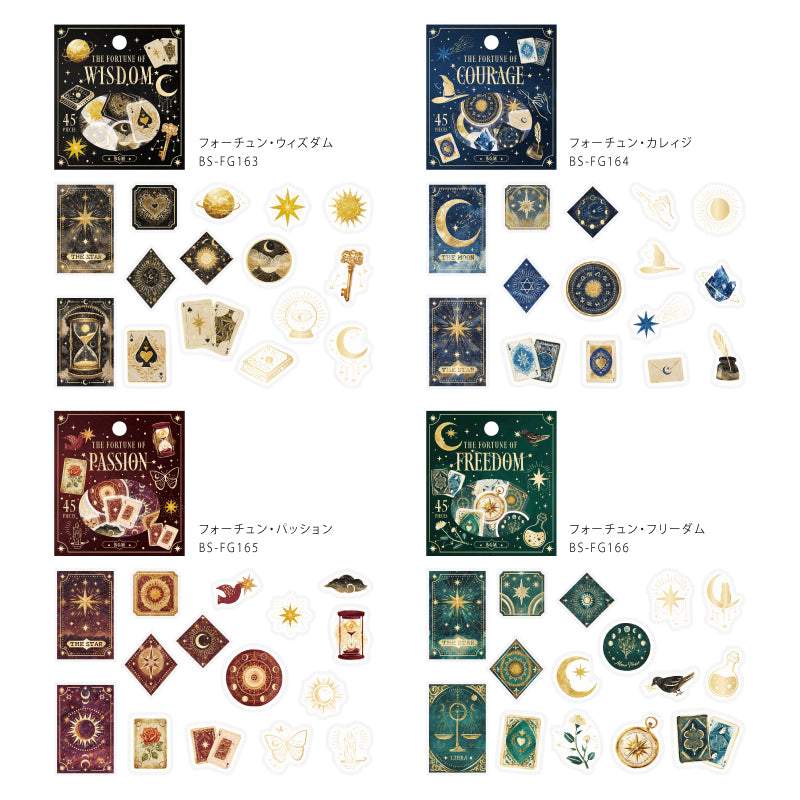 This is BGM Foil Stamping Flake Seal: Fortune - Wisdom. This enchanting set features 45 sheets, each adorned with 15 unique designs inspired by the pursuit of knowledge. Crafted from high-quality Washi Paper, these flake seals add elegance and insight to your scrapbooks, journals, planners, and more.